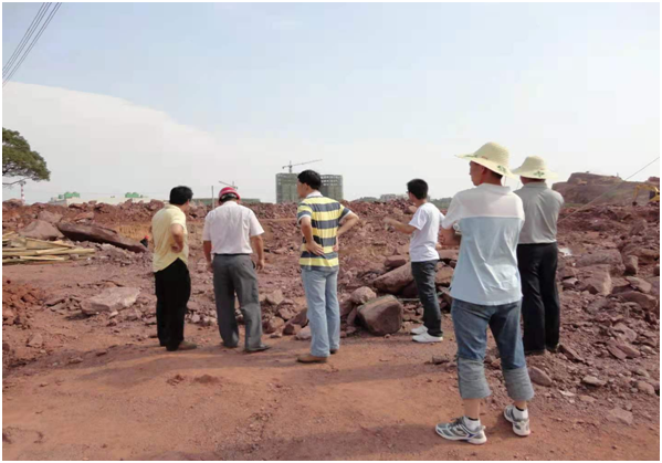 照片拍摄于2011年6月21日,照片人物从左至右依次为韩勋(时为赣州深联环保站建筑施工方深圳市振泰科技老板)、李建华(时赣州深联筹建办项目经理)、付涛(时赣州深联环保站工艺设计及施工深圳市诺金环保老板)、周军(时赣州深联筹建办环保工程师)、陈云宝(时赣州深联筹建办工艺经理)、曾鹏(时赣州深联筹建办工程部总经理)正在考察我们赣州深联环保池修建地。