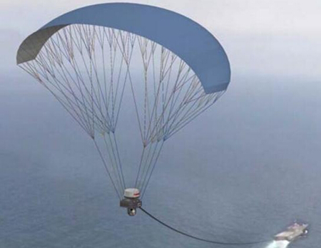 美国DARPA正在开发一种低成本的全自动翼伞无人机,来延长小型船舶的通讯距离。通过绳索、降落伞将小型无人机固定在船尾处,在行驶中无人机升空,可有效延长通讯距离,相比一般的船舶桅杆更为理想。