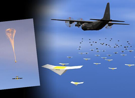 美国海军实验室目前已经开始测试其研发的近距离隐蔽自主无人机的项目,它的设想是飞机一次发射大量低成本的一次性无人机,每个无人机间能够自动配置网络实现连接并交换数据,实现对地形的侦测。