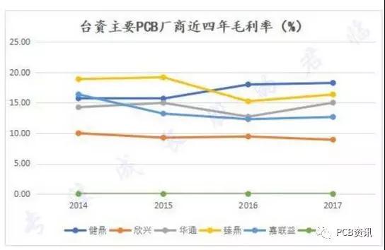 台湾高端厂商的主营业务成本占营收比率普遍要比深南、景旺等大陆厂高5-14个pct(除了台郡),低端厂商比大陆厂高13-21个pct。