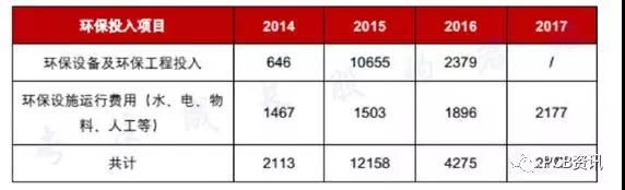 深南电路近年来的环保投入(万元) |