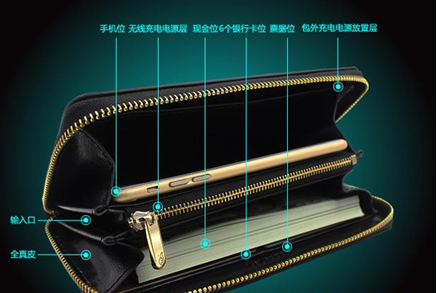 此外,该款钱包除了防丢以外,不仅兼顾了所有普通钱包的功能,而且还具有给手机无线充电的功能。你只要将一个厚度仅为8.9mm的无线充电电源放入钱包的夹层即可实现为手机充电的功能。据介绍,这个无线充电功能可以支持绝大部分手机,容量为4000mAh,能为三星S5充电1.2次,为iPhone 6充电1.5次。