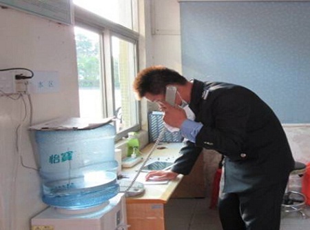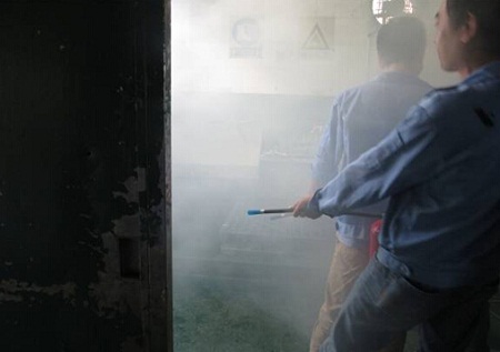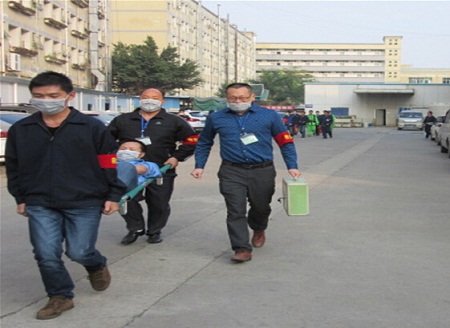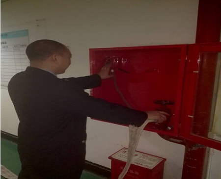部门义务消防队员听到灭火求救声,立刻放下手头工作参与初期火灾灭火工作。