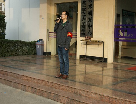 安全主任对消防安全管理人员进行消防演习前动员大会