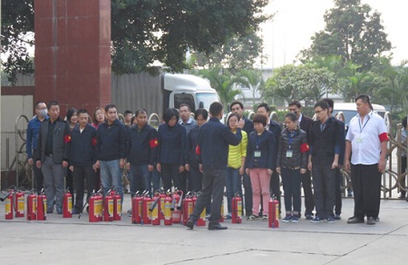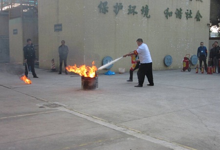 现场消防安全管理人员进行干粉灭火器实操灭火演练