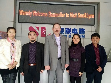2016年1月19日,德国客户Baumuller(包米勒)一行业访深联电路板厂。Baumuller成立于1935年,是电气传动和自动化系统的全球领先制造商,致力于新技术的研发,与机械工程领域客户的紧密合作。在全球范围设有40多个分公司。随着业务的拓展,2006年包米勒在中国上海成立独立的中国区公司,大力开拓中国市场。