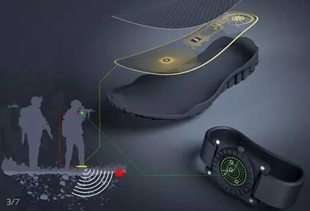 哥伦比亚的Lemur Design Studio公司研发了一款SaveOneLife智能鞋垫。顾名思义,这款设备的主要目的就是为了保护士兵的生命。将印刷电路板组成的金属探测器安装在鞋底,当士兵巡经的范围内有大块金属的磁场反应,与鞋垫联通的手表上就会发出警示信息,告知士兵绕行并在手表上提示可疑物品的位置。