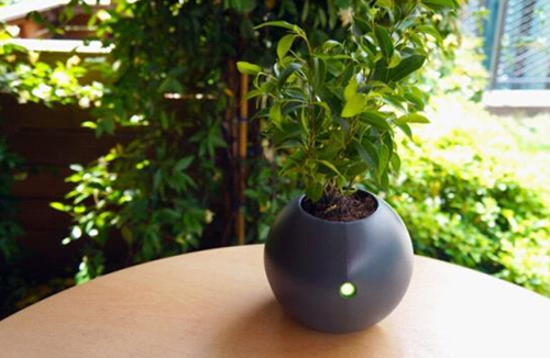 这枚神器的名字叫Biom,是一款智能花盆,可以接入到Wi-Fi网络中,通过智能手机App给我们发送通知。它上面有一个LED指示灯,并且可以通过四种不同的颜色显示不同的状态。如果指示灯为蓝色,那么就代表需要浇水;绿色表示需要更多的养料;红色代表温度,黄色代表阳光。同时,不同指示灯所显示的更多细节还会出现在智能手机的App上。App可以显示不同类型的数据,甚至还能告诉我们应该如何更好的照顾不同种类的植物。