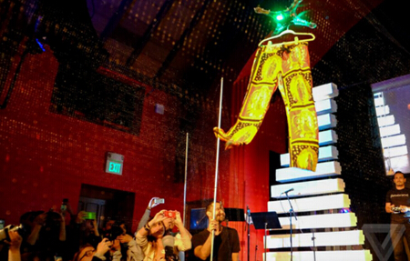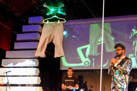 这是在本月硅谷一家时尚服饰品牌公司Betabrand承办的一次硅谷时装周。很明显,无人机的使用提醒着观看时装周的人们,这不是一个传统意义上的时装表演,它似乎在像人们宣布,今天的时装周用人当模特,但未来,一定会是机器人。