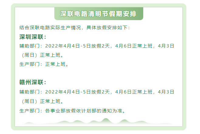 你要的深联电路电池线路板厂清明节假期咚鸡来啦!