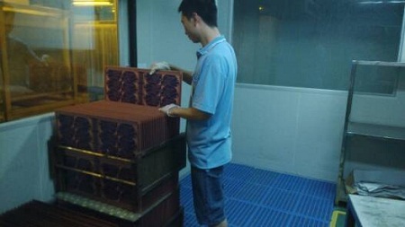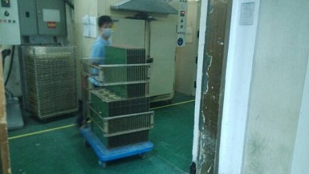据说干菲林这份工作,还是需要点肱二头肌才能驾驭得了的,瞧这小哥刚搬了显影后的板子上架毫不费力,此时正一块块整理着。