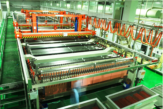 采用了“定时反脉冲”按照时间使电流在供电方式上忽而正镀忽而反镀(即阳极溶解),按照时间比例交替进行,使电镀铜的沉积很难在常规供电方式取得相应的铜层厚度而得以解决。当阴极上的印刷线路板处于反电流时,就可以将孔口高电流密度区铜层迅速得到迅速的溶解,由于添加剂的作用,对低电流密度区影响却很微,因而将逐渐使得孔内铜层厚度与板面铜的厚度趋向于均等。