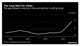 据电池线路板小编了解,最新调查研究发现,购买芯片的企业从下单到等待芯片到货的时间已拉长到超过20周,显示全球芯片短缺问题继续恶化。