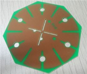单面板的布线图以网路印刷(Screen Printing)为主,亦即在铜表面印上阻剂,经蚀刻后再以防焊阻印上记号,最后再以冲孔加工方式完成零件导孔及外形。此外,部份少量多样生产的产品,则采用感光阻剂形成图样的照相法。