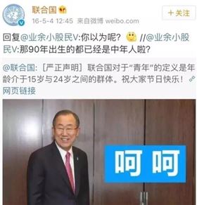 然后是联合国发来的“严正声名”——90后从此站起来了,站进中年人的队伍了!