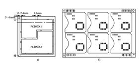 拼板之间可以采用V形槽直线分割、邮票孔、冲糟等工艺手段进行组合,要求刻糟精确、深度均匀,有较好机械支撑强度但又易于分割机分断或用手掰开。