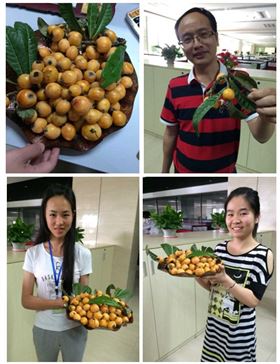 不过,果实都熟了,哪有不吃的道理呢,谁能忍受这个诱惑嘛!作为人政部的一员,当然要体恤吃货同事们的心思,乘着好天气,把黄金枇杷全给收了。纯天然没打过农药的果子,吃起来的感觉,那是根本停不下来啊!吃的同时当然忘不了现场分享的啦,见者有份,哈哈。
