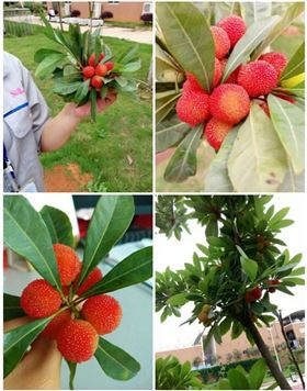 枇杷刚吃完,杨梅也紧跟着熟了!这是要满足小编这颗吃货的心呀!偶然间在公司篮球场发现了这颗杨梅树,今年可是第一次结果呦!这杨梅只是光看这水灵灵的外表,就把我馋得口水都要掉了,吃上几颗,甜中带点酸味,沁入心脾,哇塞!太好吃了。。。。这颗公司种植的纯绿色无污染的杨梅,看着舒心,吃着更放心!