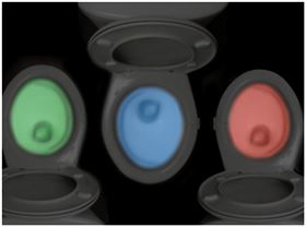 这款LED灯装置可以检测到人的动作,当人靠近的时候,设备会发光,把光线投射到马桶里的水,通过反射产生马桶在发光的效果。当人离开后,设备会自动关灯。