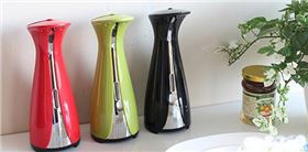 和公共卫生间常见的自动感应水龙头一样,只要将手伸到瓶口之下,洗手液就会自动流出,并且能通过前方透明的窗口显示瓶内剩余洗手液的含量。同时它会根据手停留的时间自动控制洗手液的流出量,非常方便。
