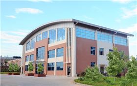 公司大门正面与侧面各来一张,正面照气势十足,不过小编觉得侧面一张的更具曲线美。蓝天白云,红墙绿草相映,一点都没夸张吧!