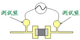 但是如果让这些探针直接接触到板子上面的电子零件或是其焊脚,很有可能会压毁一些电子零件,反而适得其反,所以聪明的工程师就发明了「测试点」,在零件的两端额外引出一对圆形的小点,上面没有防焊(mask),可以让测试用的探针接触到这些小点,而不用直接接触到那些被量测的电子零件。