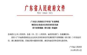 9月10日,广东省人民政府印发《广东省降低制造业支持实体经济发展的若干政策措施(“修订版”)》(下称修订版)的通知。