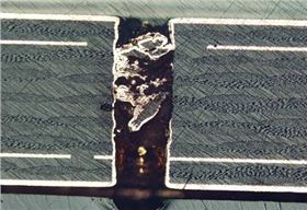 有钻咀断在孔内导致的孔无铜,切片特征:孔内有明显的断钻咀